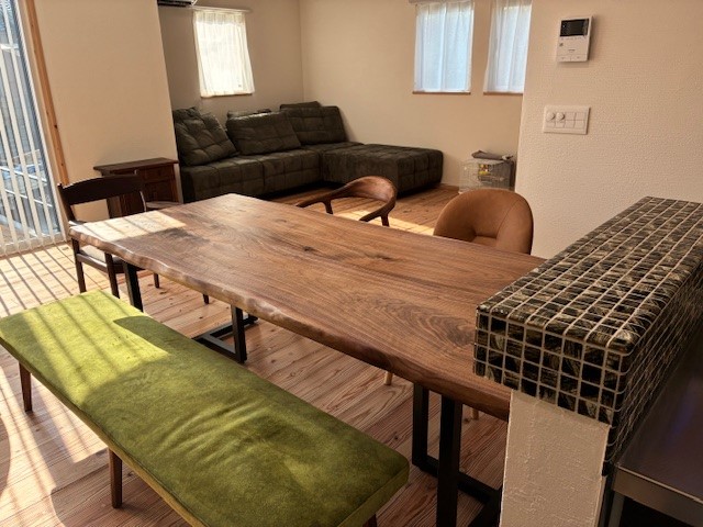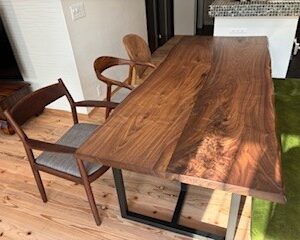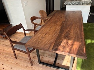 11月下旬にウォールナット2枚はぎテーブル、ダイニングチェア3脚、ソファを納品させていただいたお客様から、納品後の素敵なお写真をいただきましたのでご紹介いたします。