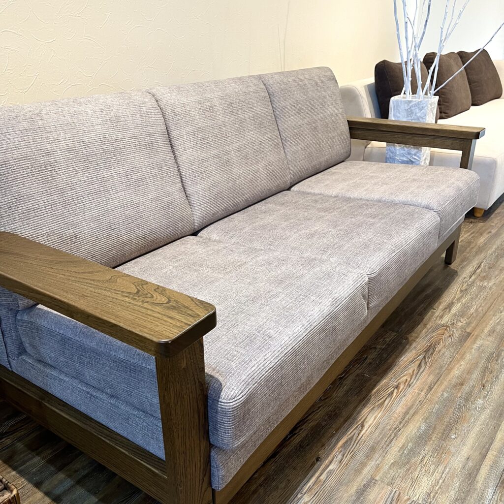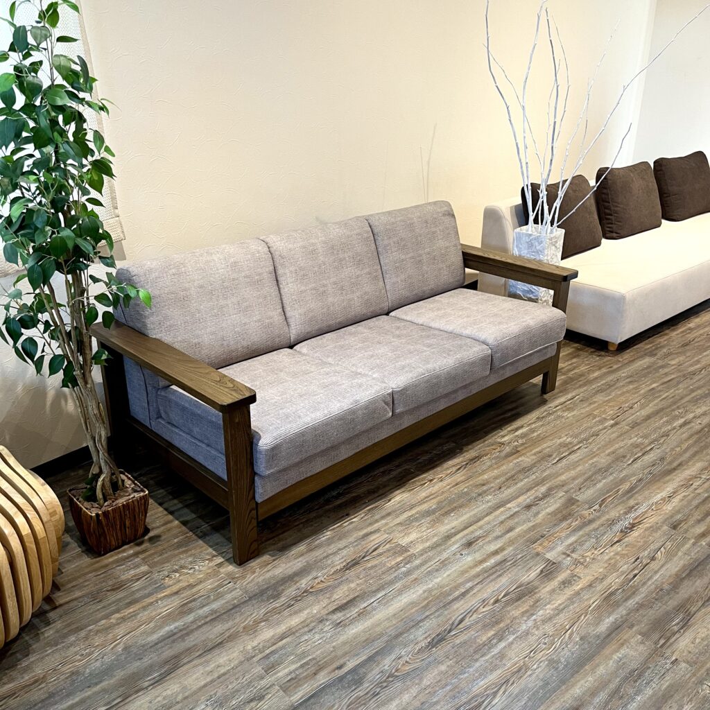 ニレ無垢材を贅沢に使った木製フレームが美しいソファです。