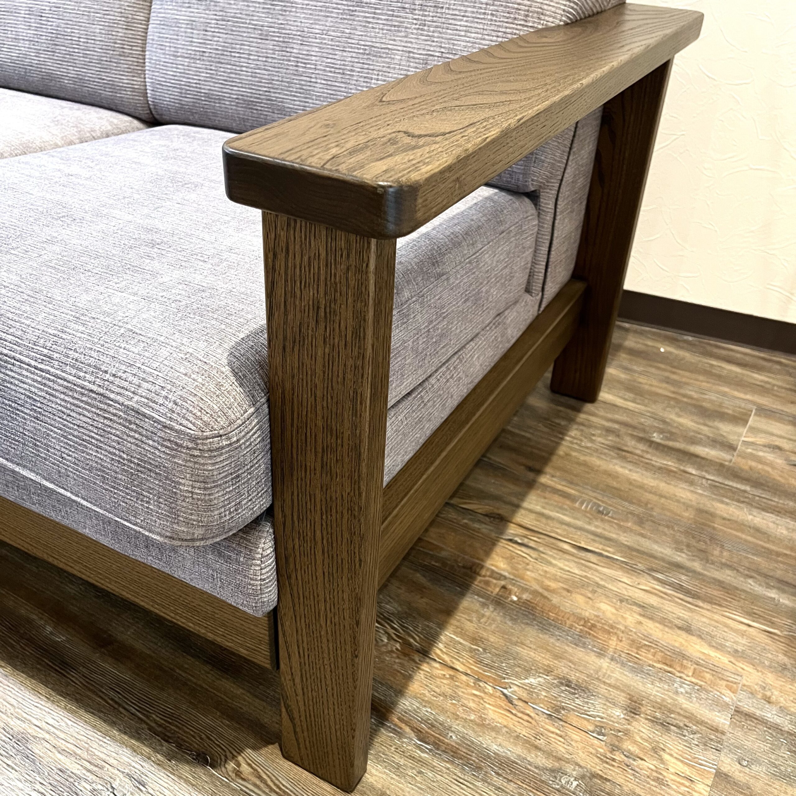 肘掛け、脚、フレームとニレの無垢材を使用して、熟練のソファ職人が木目を考えながら美しいラインで作られます。