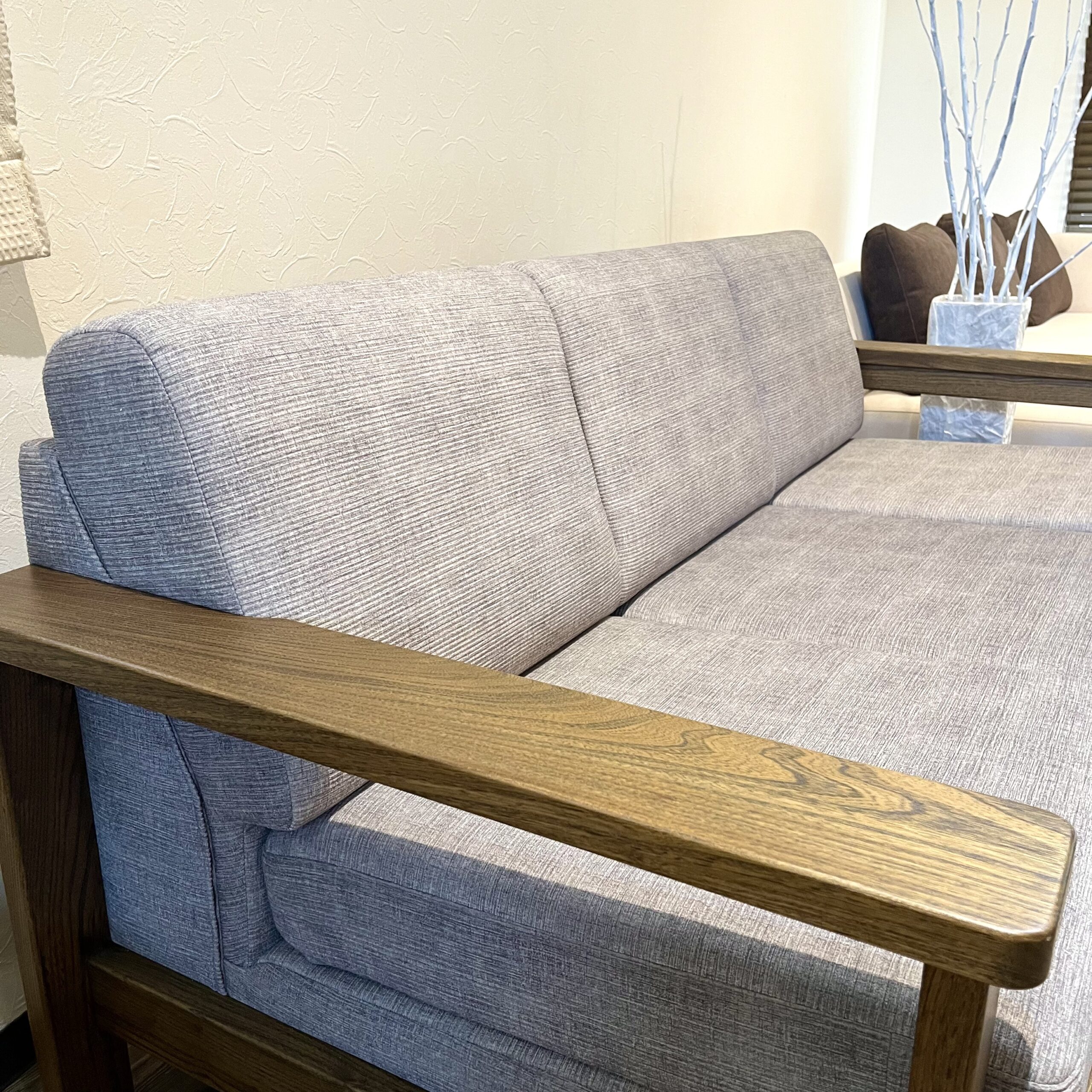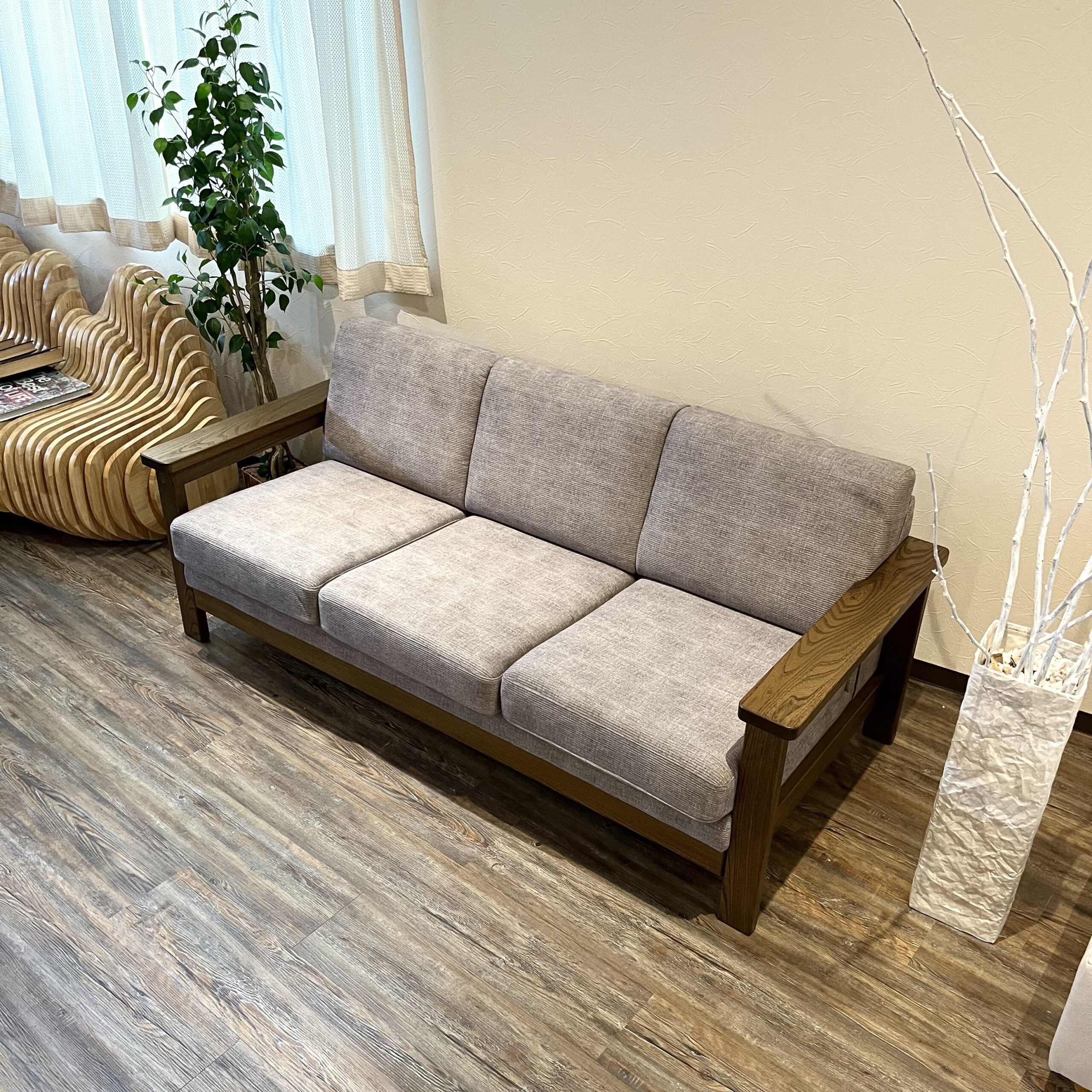 ニレ無垢材を贅沢に使った木製フレームが美しいソファです。
