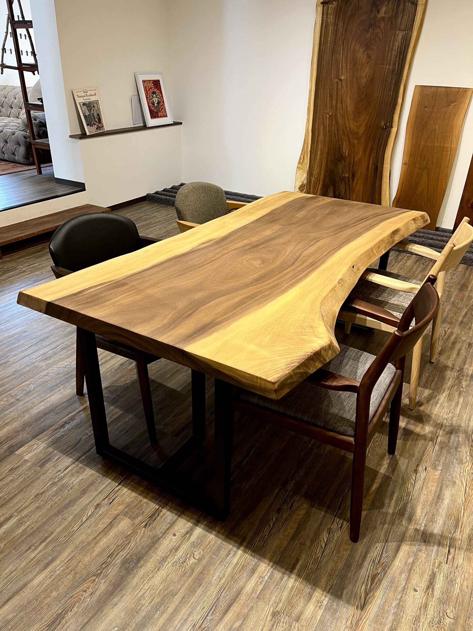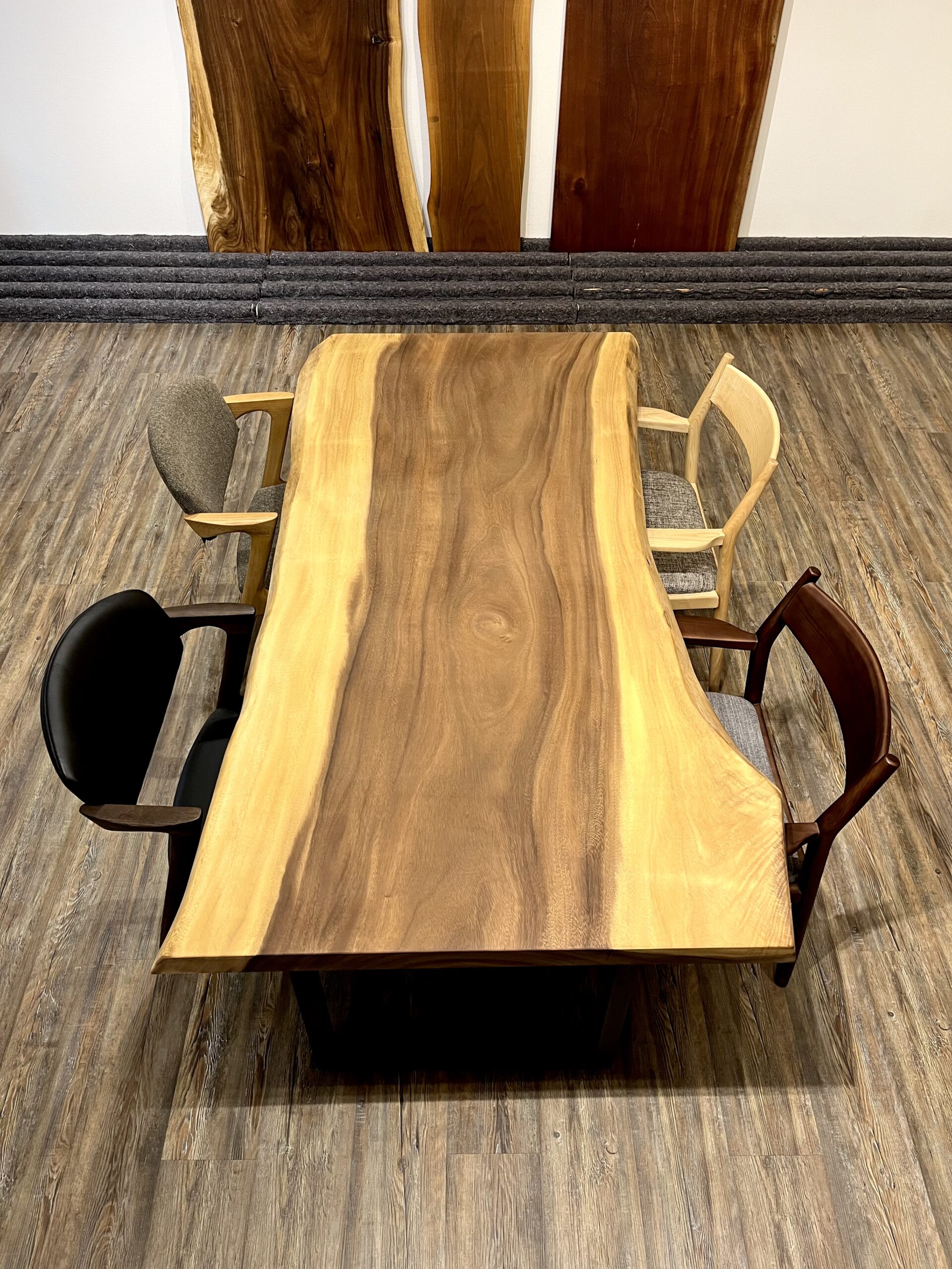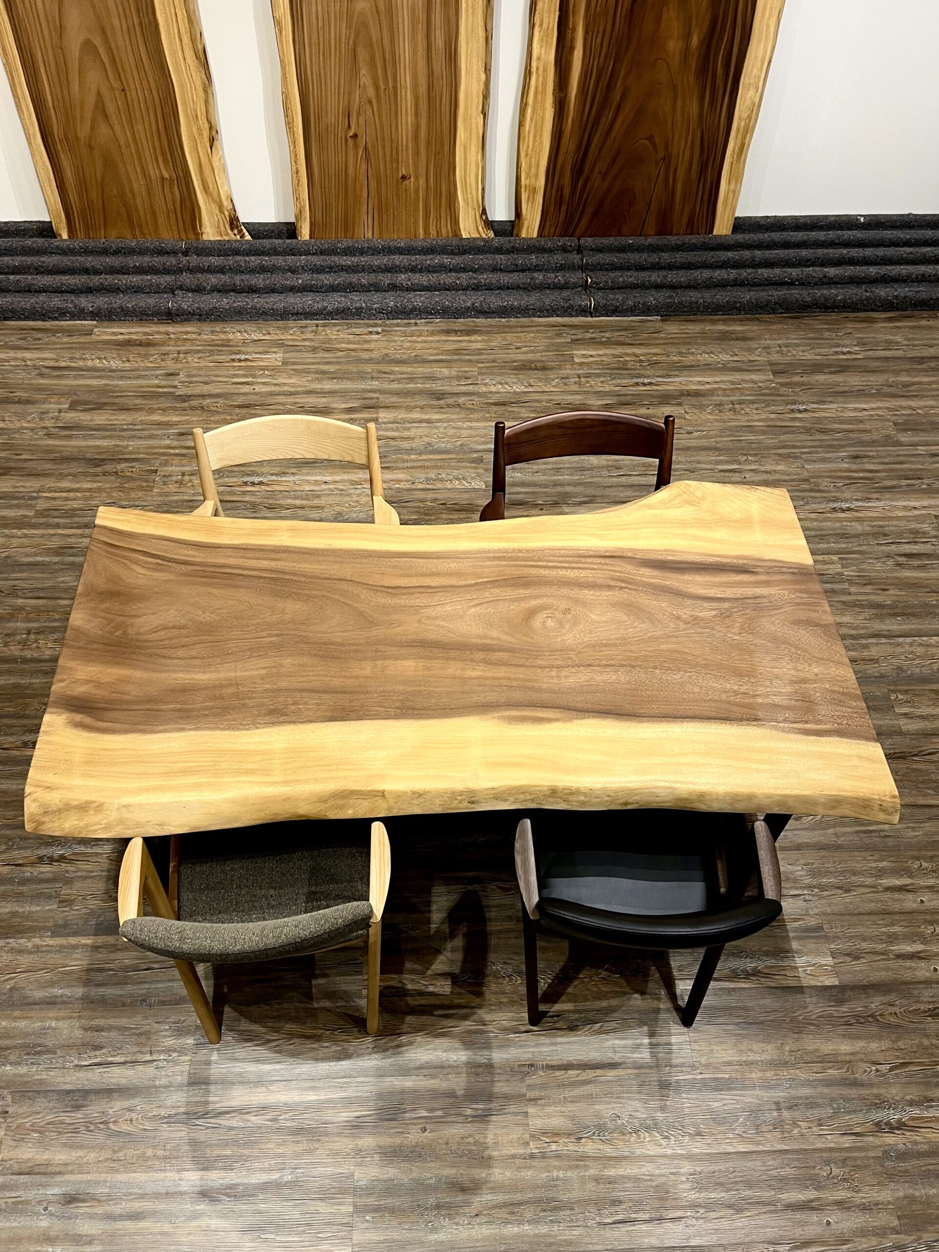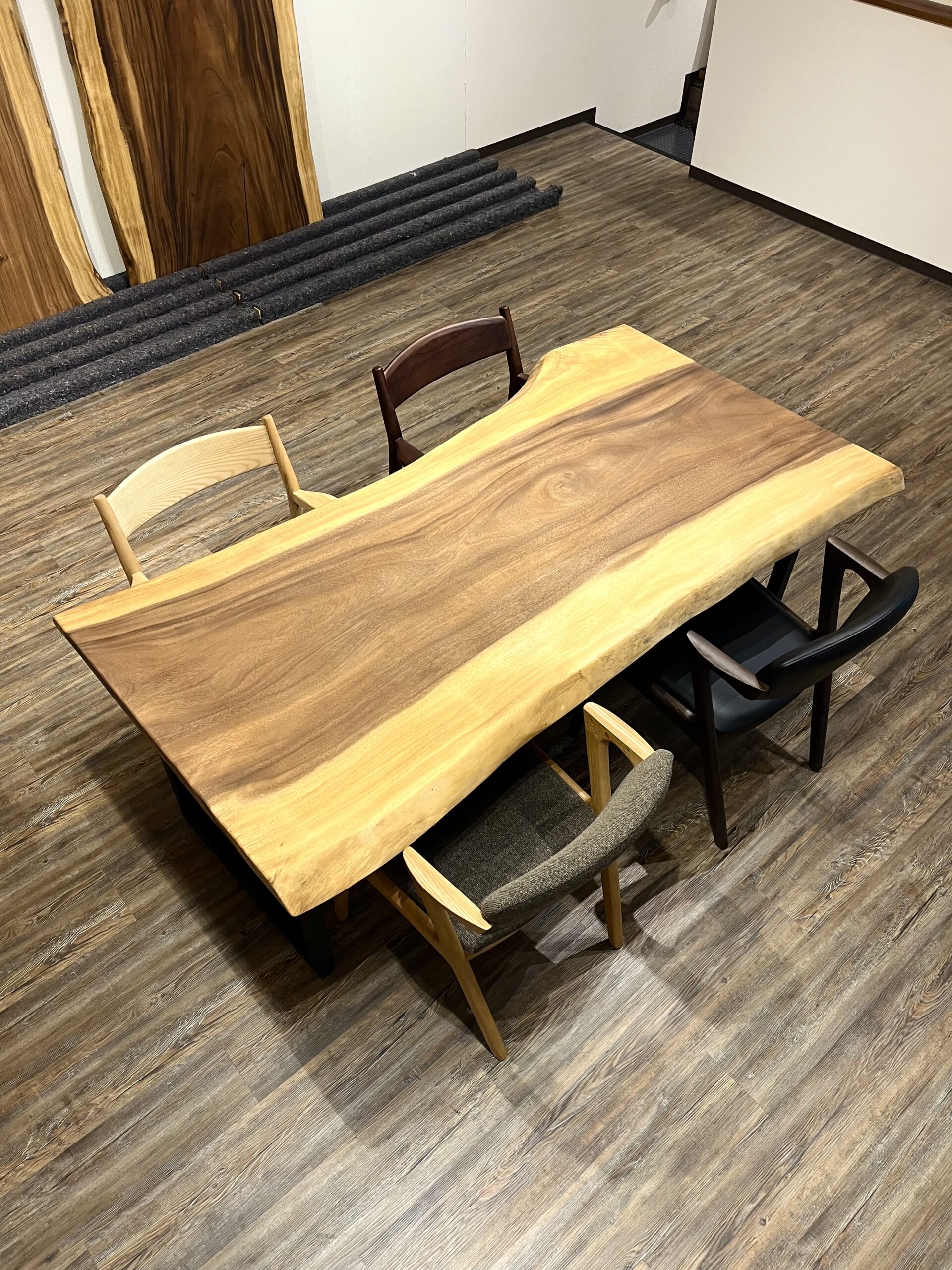 モンキーポッド一枚板を使ったダイニングテーブルです。