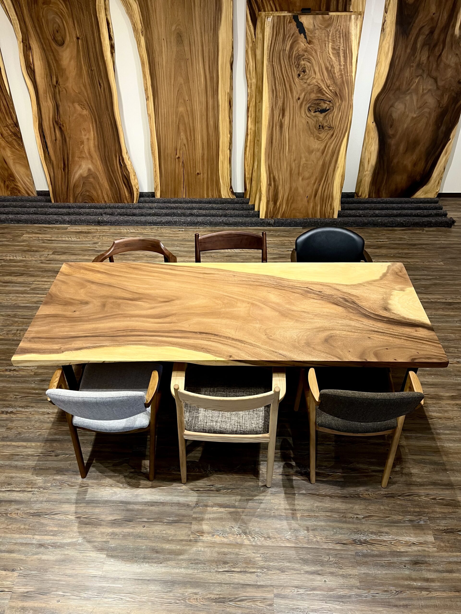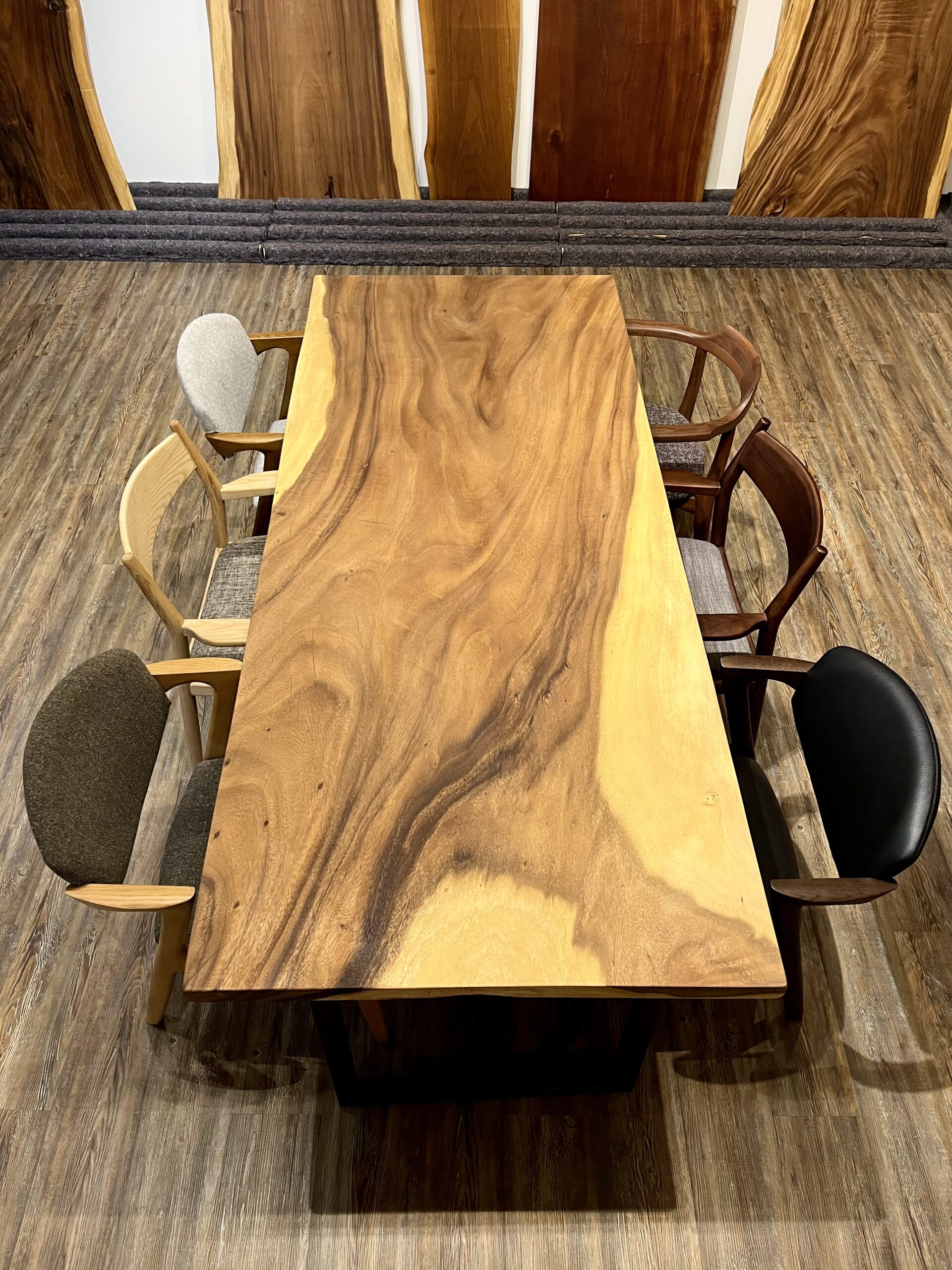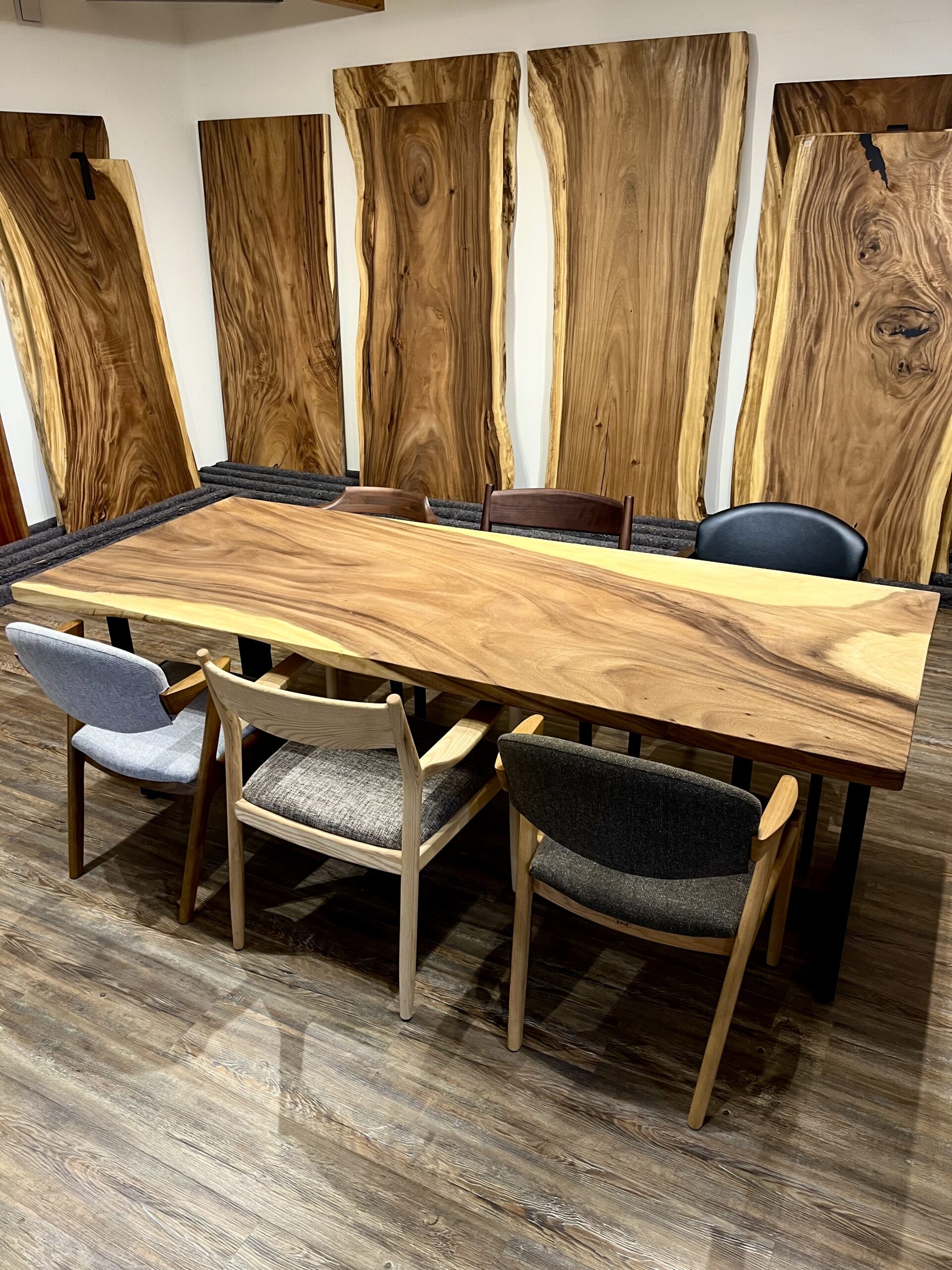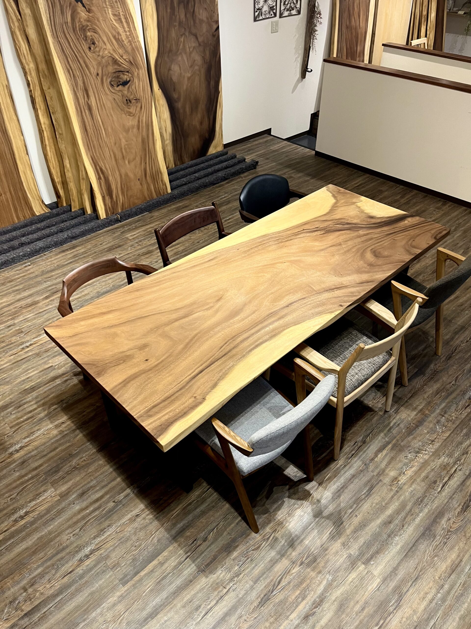 モンキーポッド一枚板を使ったダイニングテーブルです。
