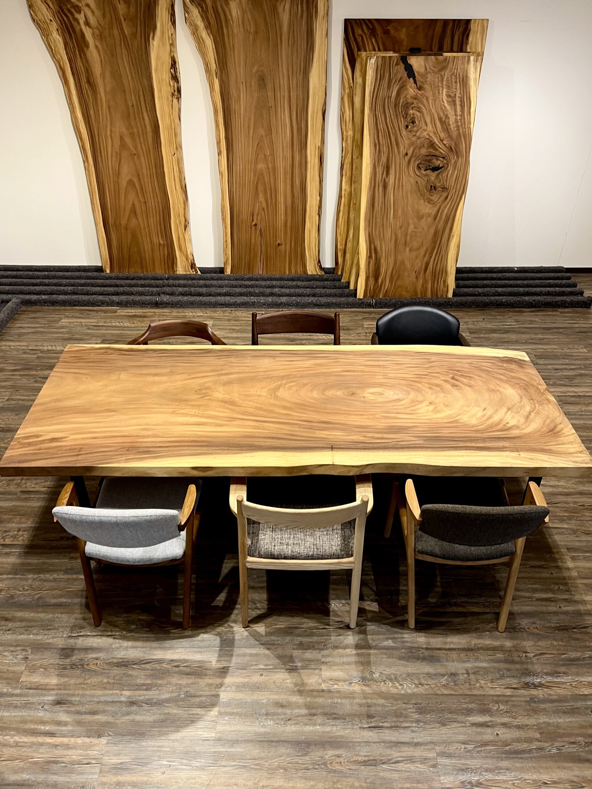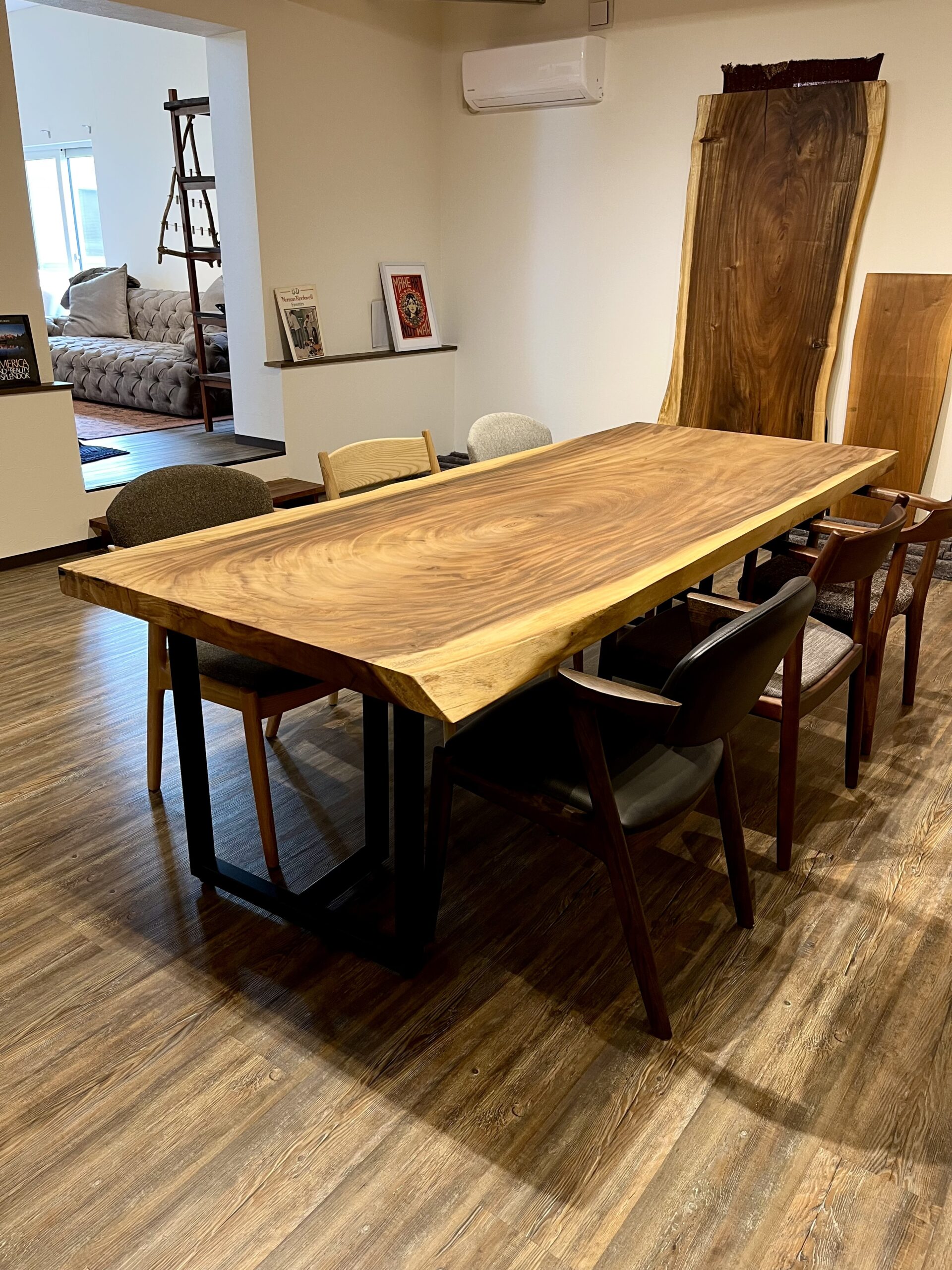モンキーポッド一枚板を使ったダイニングテーブルです。
